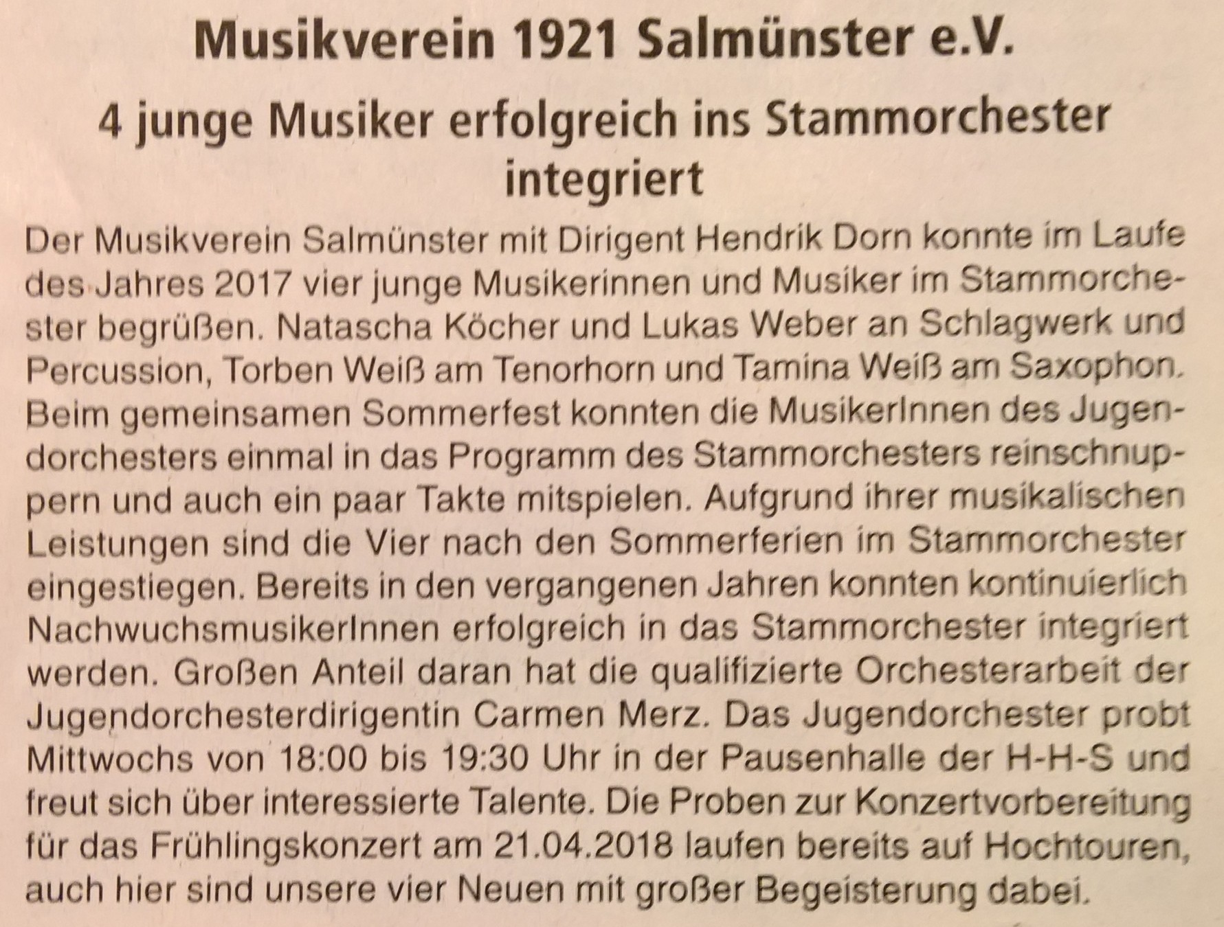 Neue MusikerInnen im Stammorchester