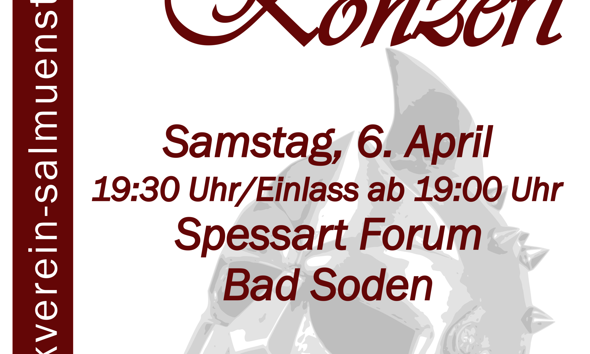 Vor zwei Jahren mussten wir leider auf Grund des 1. Covid-Lockdowns unser für den 21. März 2020 geplantes Konzert absagen. Die für diesen Auftritt erworbenen Karten können selbstverständlich gegen Karten für unser Herbstkonzert umgetauscht werden.